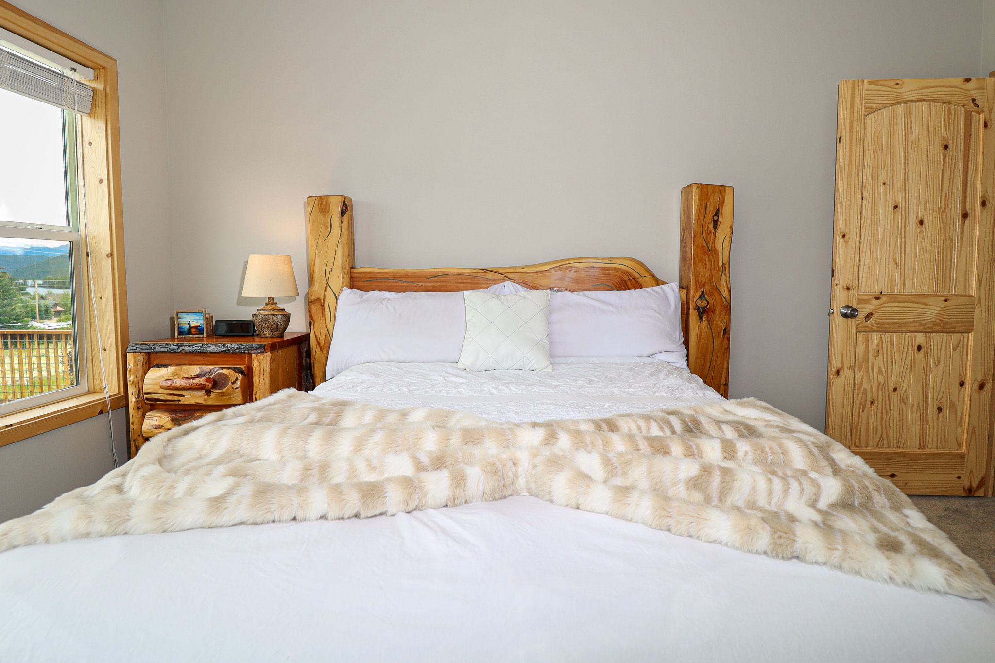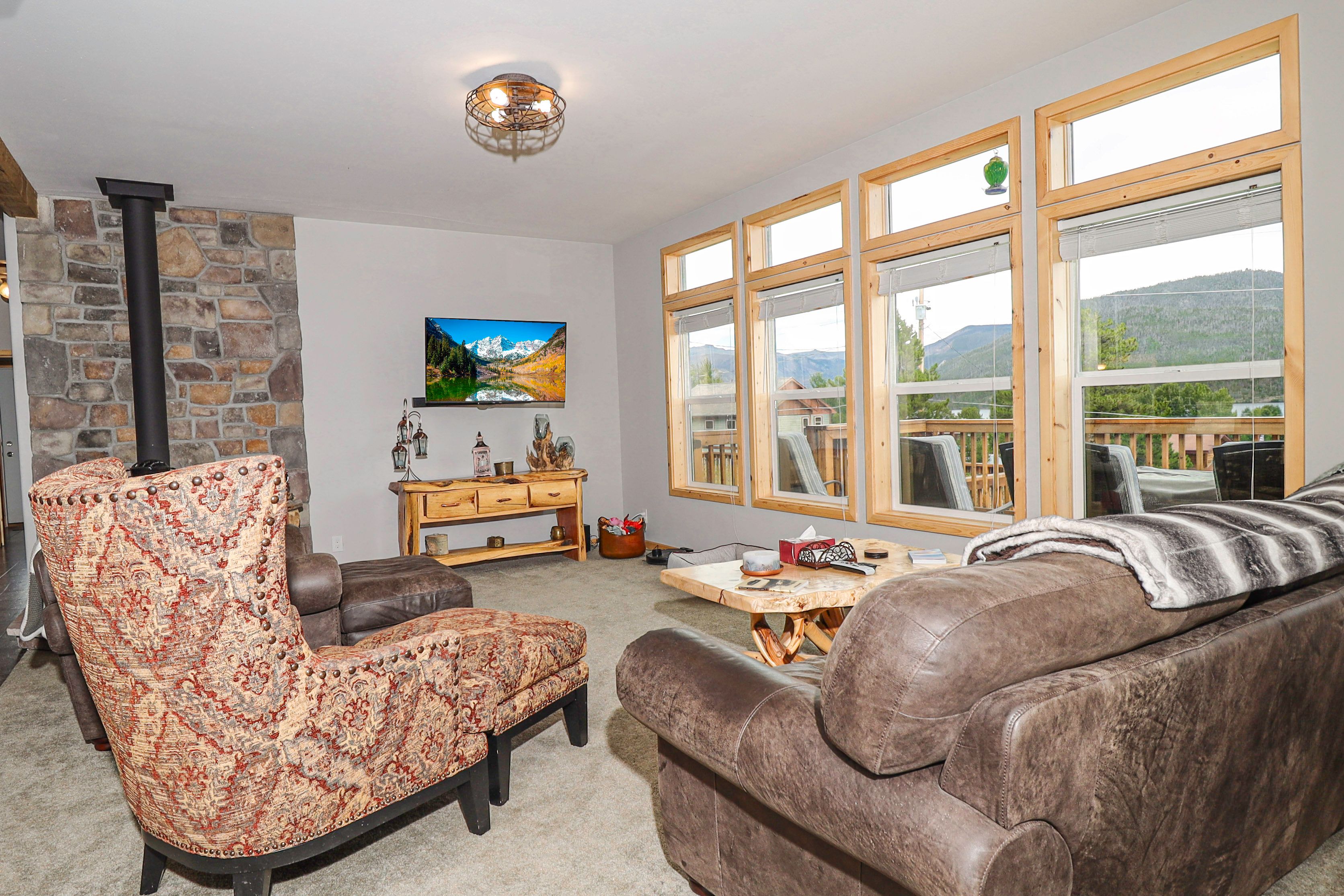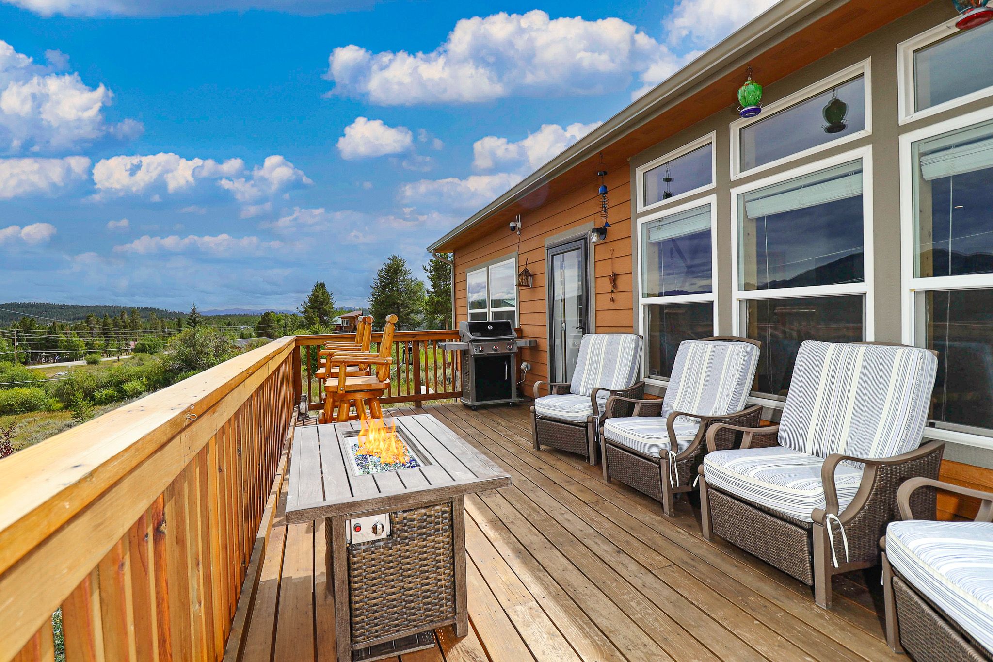 3 BR2 BA7 Guests Deck with a View!Sunrise from Back DeckFront of home and GarageLiving RoomLiving AreaWood Burning StoveLiving AreaEntryway and Dining AreaDining AreaKitchen and Diningkitchen w/ IslandLiving Room & Kitchen BarKitchenCoffee Counterkitchen Stove and RefrigeratorMaster Bedroom With ViewsMaster BedroomMaster BathroomMaster Bathroom Shower & VanityMaster Bathroom Spa TubMaster Bathroom Vanity & ToiletQueen BedroomQueen bedroom w/ ViewsQueen BedroomFull Bathroom Left HallwayTwin Over Full Bunk RoomLaundry & Utility Room w/ Side DoorBack Deck w/ Gas Grill & Gas FirepitDeck with Seating and Gas FireDeck with Gas Fire PitFenced Back YardSeating area Front of HomeFront of the home and Driveway Request infoSearch AvailabilityBedsKing 1Queen 1Bunk 1Featured AmenitiesKeurigWasher & DryerDeckWiFiPet Friendly