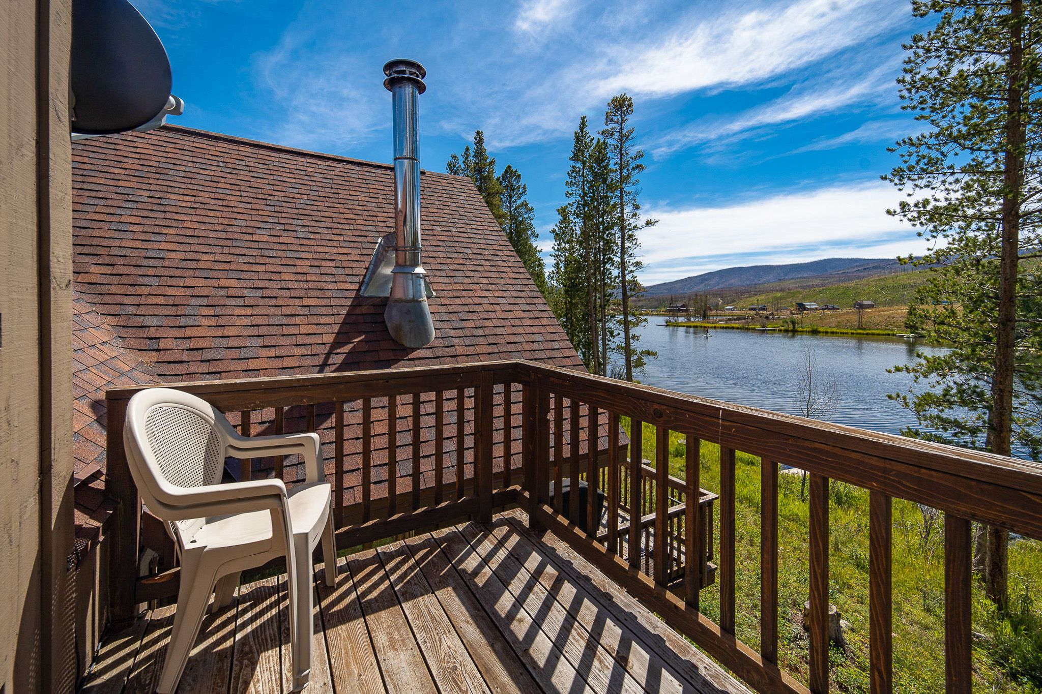 2 BR1 BA6 Guests Winter Exterior Sunset Around Fire PitFront of HouseLiving Area with TVLiving Area with TVLiving Area with TVSitting AreaDining area / stairs to loftKitchen and diningKitchen AreaBathroom with tub/showerLoft area with twin bedsPrivate BedroomPrivate BedroomPrivate bedroomView from bedroom balconyDeck with grill and seatingDeck with SeatingView From DeckDock for non-motorized vesselsBackyard view with firepitLake from backyard and firepitFront of HomeFront of HomeBack of houseBack of houseWinter ExteriorWinter ExteriorMoose in LakeExterior Request infoSearch AvailabilityBedsQueen 1Twin 2Sofa Bed 1Featured AmenitiesDeckWiFi
