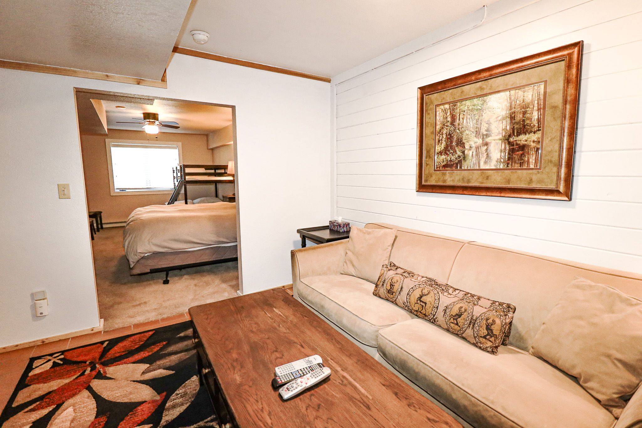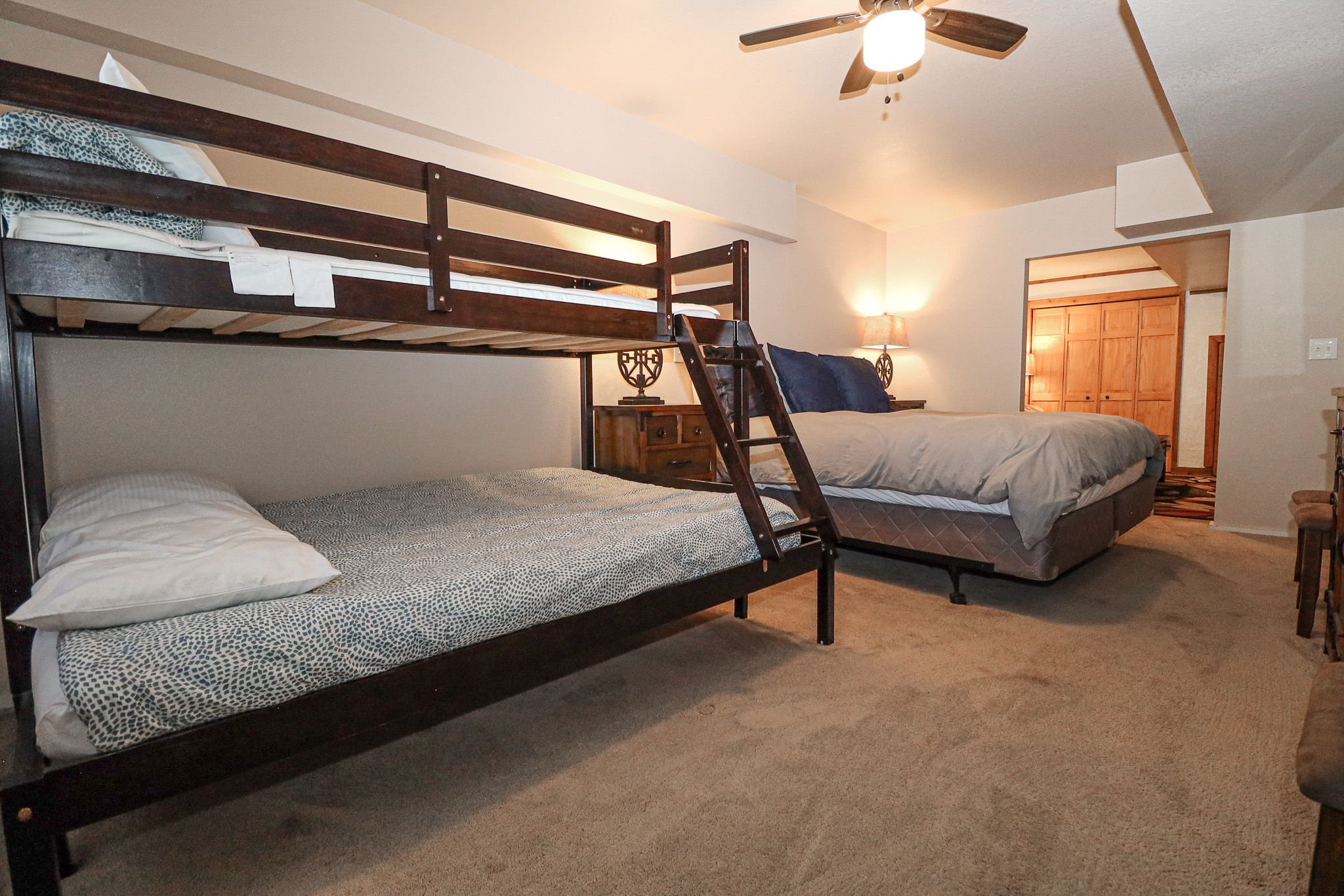 2 BR2 BA8 Guests Front of HomeSide of House with New Deck!Living Room Couches, Dining and Kitchen AreaKitchen Island & Living RoomLiving RoomEntry, Kitchen Island, LoftLiving Room with TV and Gas FireplaceLiving AreaKitchen w/updated appliancesUpstairs Queen BedroomMain Floor Bedroom w/ QueenUpstairs Bathroom w/ Shower/Tub ComboDownstairs Entertainment Area and BedroomLower Level Living AreaLower Level bedroom w/King bed and twin/full bunksLower Level bedroom w/King bed and twin/full bunksView of Main Living Area from LoftLower Level bedroom w/King bed and twin/full bunksLower Level Living AreaLoft Sleep Area w/ two twin bedsMain Floor Bedroom w/QueenLoft Sleep Area w/ two twin bedsFront of HomeNew Deck with SeatingSeating on Deck w/ GrillDriveway from HouseFire Pit AreaWinter Exterior - Front of HomeWinter Exterior - Front of HomeWinter Exterior - Front of HomeWinter Driveway Request infoSearch AvailabilityBedsKing 1Queen 1Twin 2Bunk 1Featured AmenitiesWasher & DryerGarageDeckWiFiGas FireplacePet Friendly